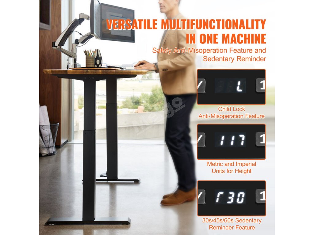 Je vybavena funkcí třípolohového nastavení výšky, takže můžete bez námahy přepínat mezi režimy sezení a stání a zvýšit tak svou produktivitu. Její prostorná pracovní plocha poskytuje dostatek místa pro vaše pracovní potřeby a zajišťuje pohodlnou kancelářskou práci.