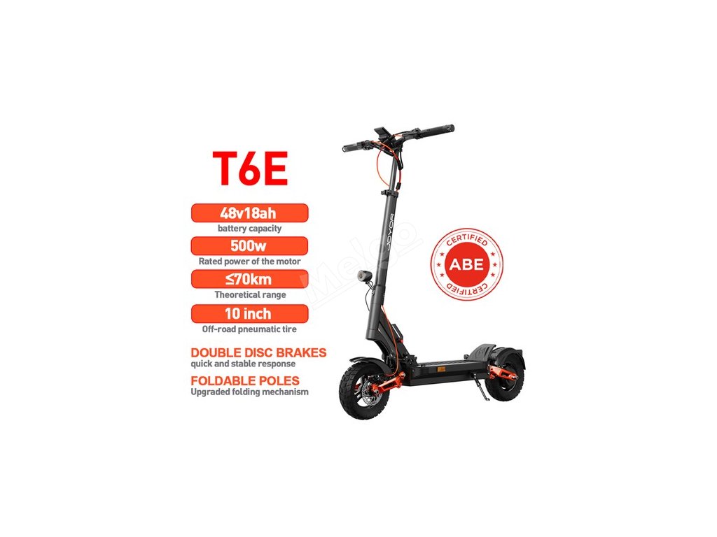 Specifikace | Materiál rámu: Slitina hliníku Výkon motoru: 500 W Baterie: 48V 18Ah Dojezd: ≤70 km Maximální rychlost: 20 km/h Brzdy: přední a zadní mechanické kotoučové brzdy Tlumiče: pneumatiky: přední a zadní hydraulické pružinové tlumiče Pneumatiky: 10palcové pneumatiky do terénu Maximální nosnost: 148 kg Flexibilita: 25 % Doba nabíjení: 10 hodin |