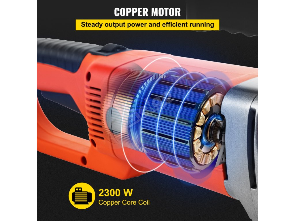 220V 2300W motor s 22 otáčkami za minutu bez zátěže. Výkonné motory zvyšují efektivitu práce a zkracují dobu výstavby.