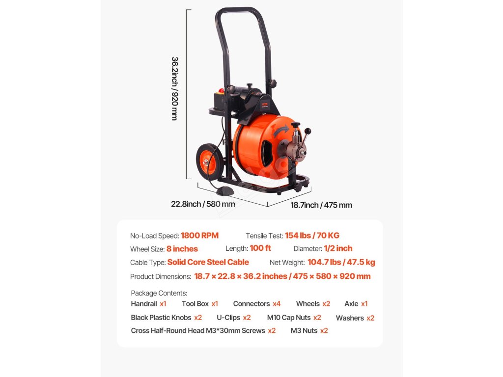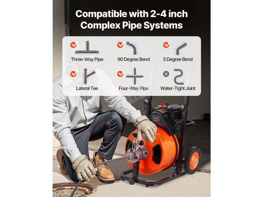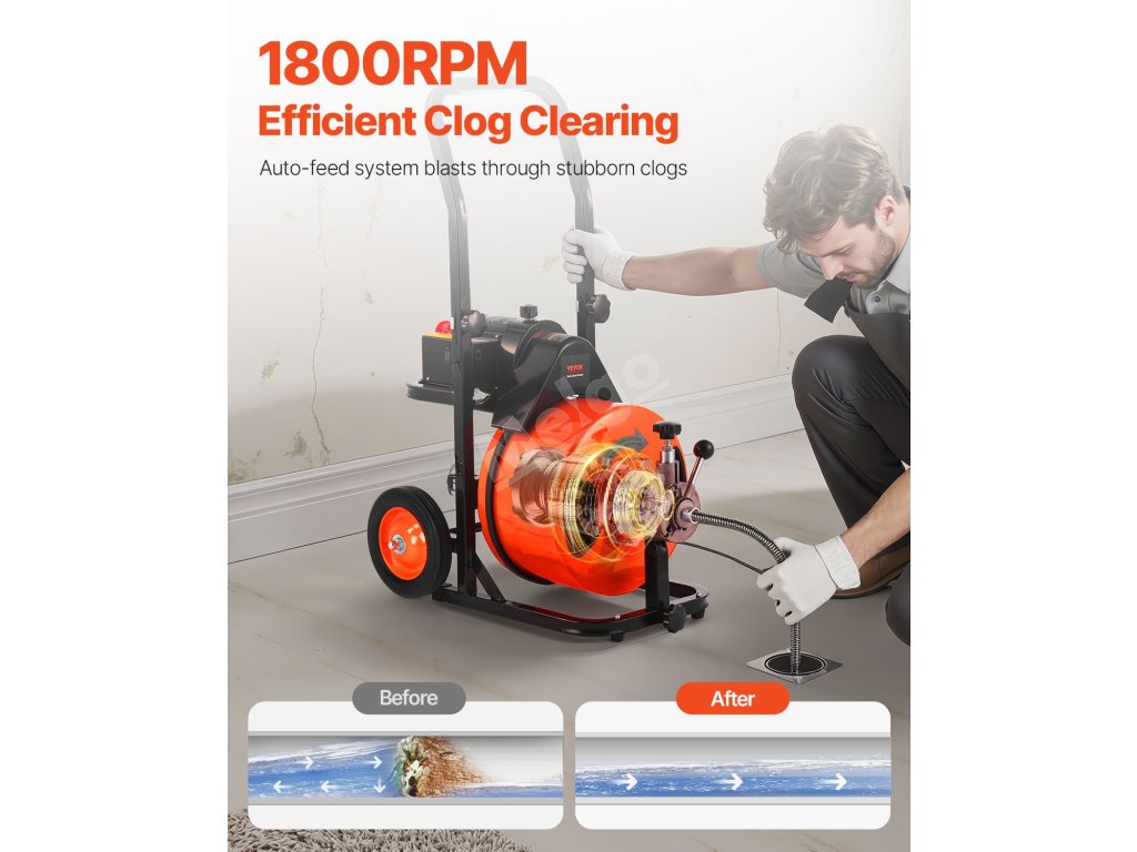 Už vás nebaví ucpané odpadní potrubí, drahé instalatérské služby a nedokončená kanalizace? Pak dejte sbohem bakteriím a příšerným zápachům! Nechte elektrický stroj na čištění odtoků VEVOR 100 FT x 1/2 In s pevným kabelem vyřešit všechny vaše problémy s ucpáním jedním tahem a bez jakýchkoli potíží!