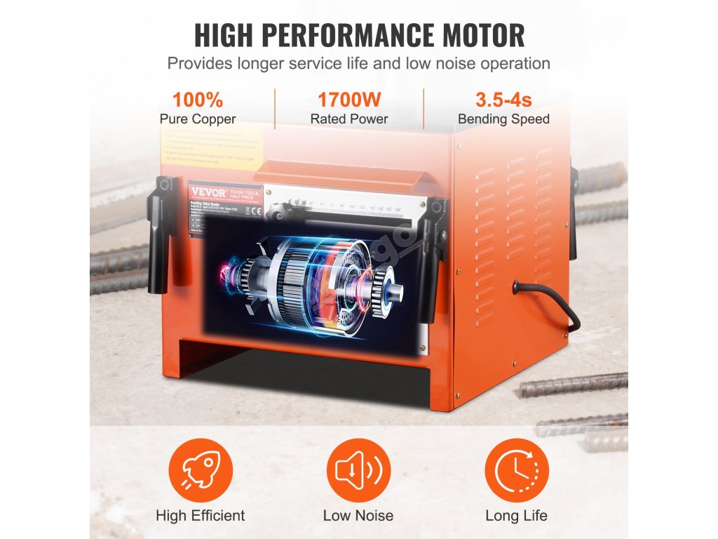 Ohýbačka výztuže je vybavena vysoce výkonným motorem se 100% čistě měděným jádrem s dvojitou výdrží pro vysokou vodivost, tichý provoz, vysokou teplotní odolnost a dlouhodobou úsporu energie.