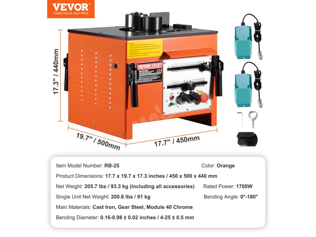 Ohýbačka ocelových prutů ohýbá ocel o průměru 0,16 - 0,98 palce velmi rychle, za pouhé 3,5 - 4 sekundy. Úhel ohybu: 0-180°. Rychlost ohýbání závisí na tloušťce výztuže a úhlu, kterého chcete dosáhnout.