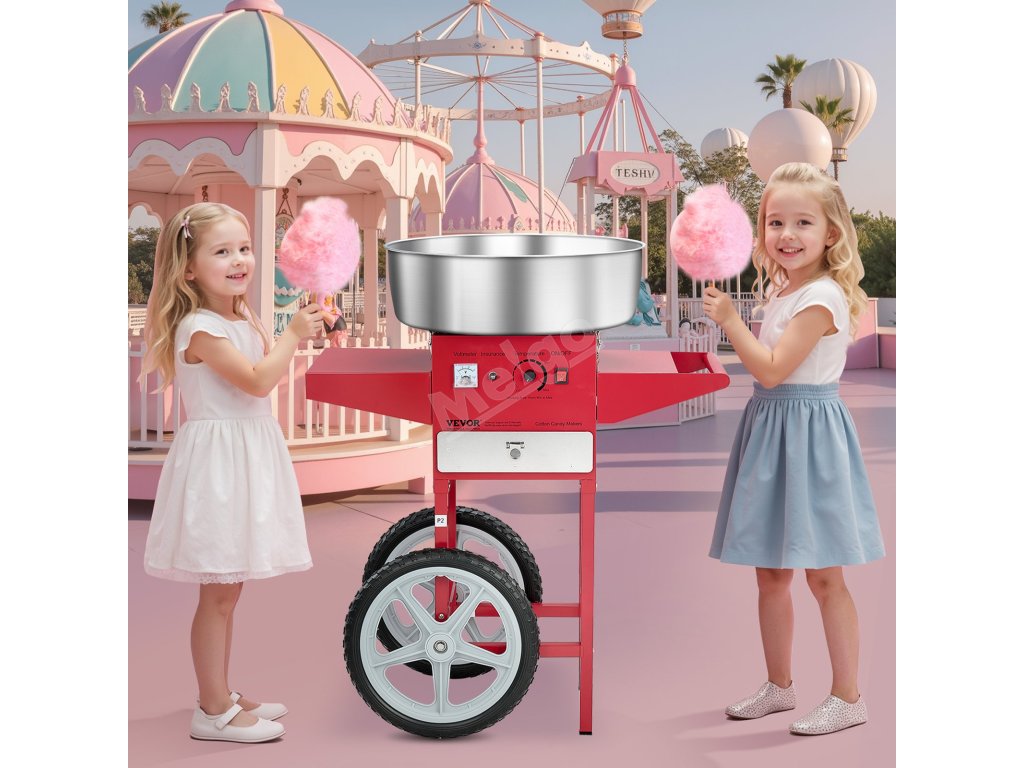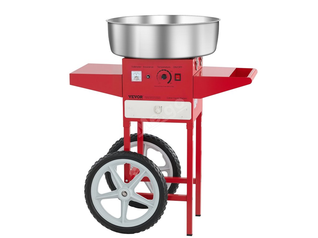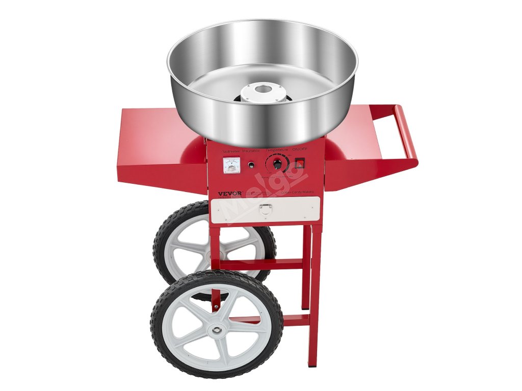Elektrický stroj na cukrovou vatu 1000 W, vozík, 52 cm nerezová miska