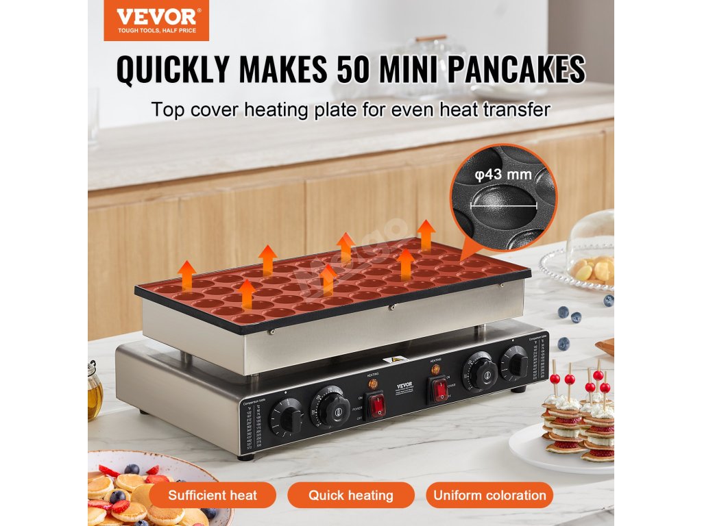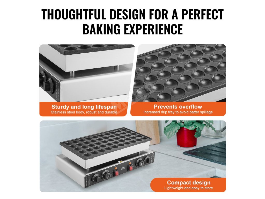 Elektrický stroj na dorayaki 50 ks, ø43 mm, 1700 W, nerez, duální