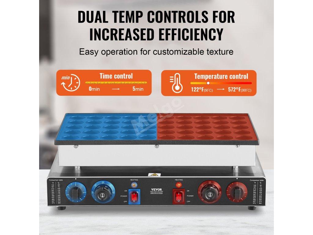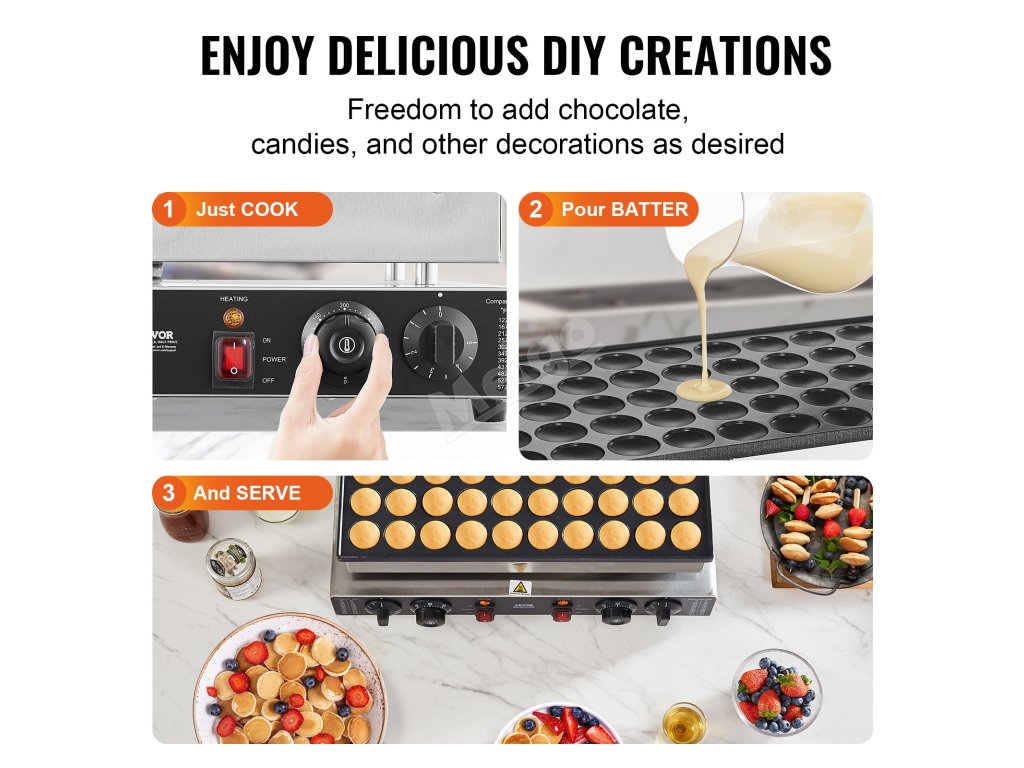 Je vybaven přesným časovačem a jasně označeným knoflíkem pro nastavení teploty. Když je vafle připravena, vydá jasný zvukový signál. Výrobník dorayaki využívá uzavřenou technologii ohřevu, která zajišťuje rovnoměrný ohřev, rychlé tvarování a snadnou výrobu chutných palačinek.