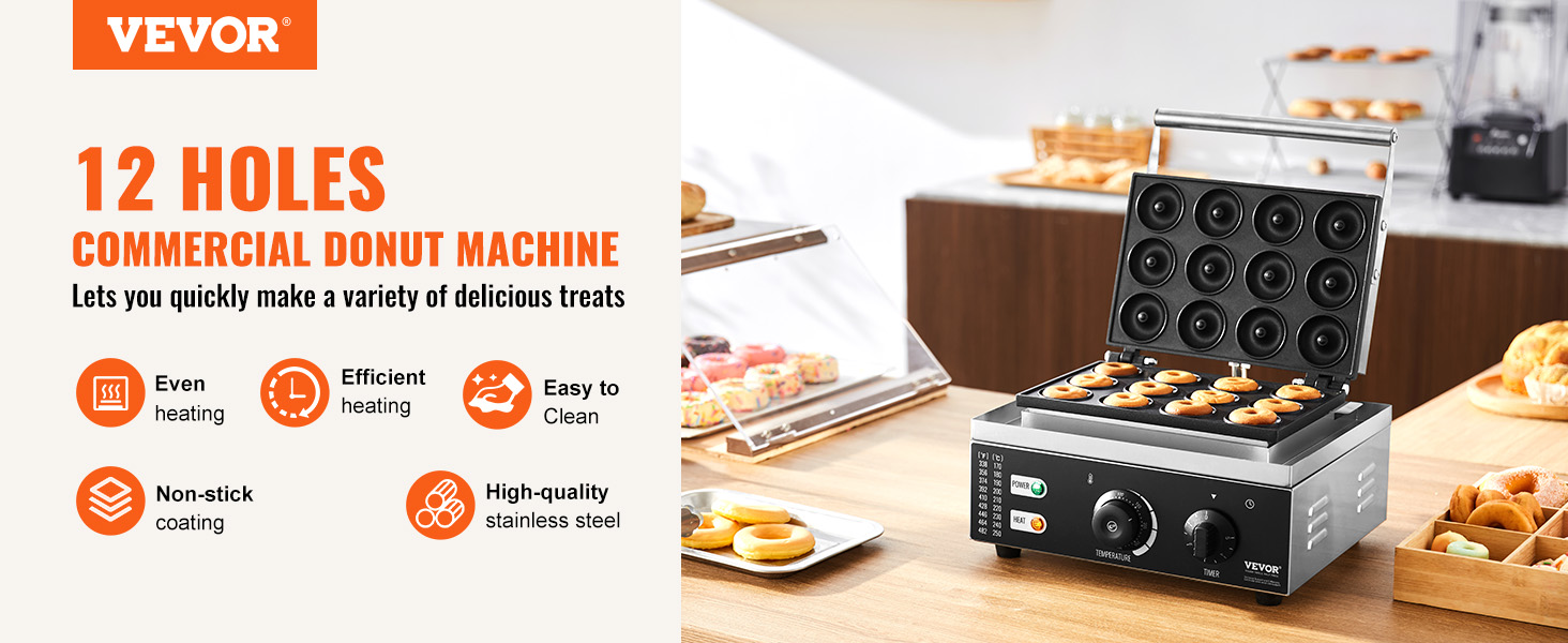 Tento odolný prístroj na prípravu donutov, vyrobený z plášťa z nehrdzavejúcej ocele a ohrievacích dosiek z liateho hliníka, sa môže pochváliť vynikajúcou odolnosťou proti korózii a hrdzi. Nepriľnavý povrch pečúcej dosky s teflónovou vrstvou bol navrhnutý na jednoduché čistenie a výrobu dokonale tvarovaných šišiek.