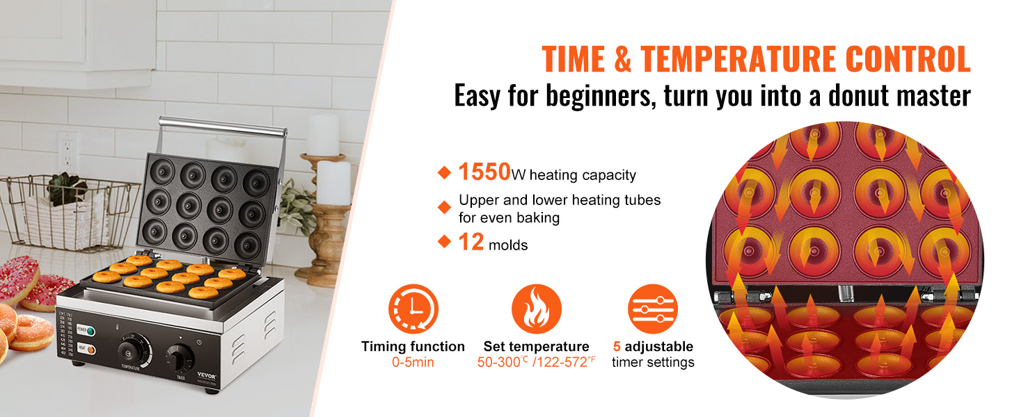 Elektrický stroj na koblihy 1550W, 12 otvorů, dvoustranný ohřev 50–300℃