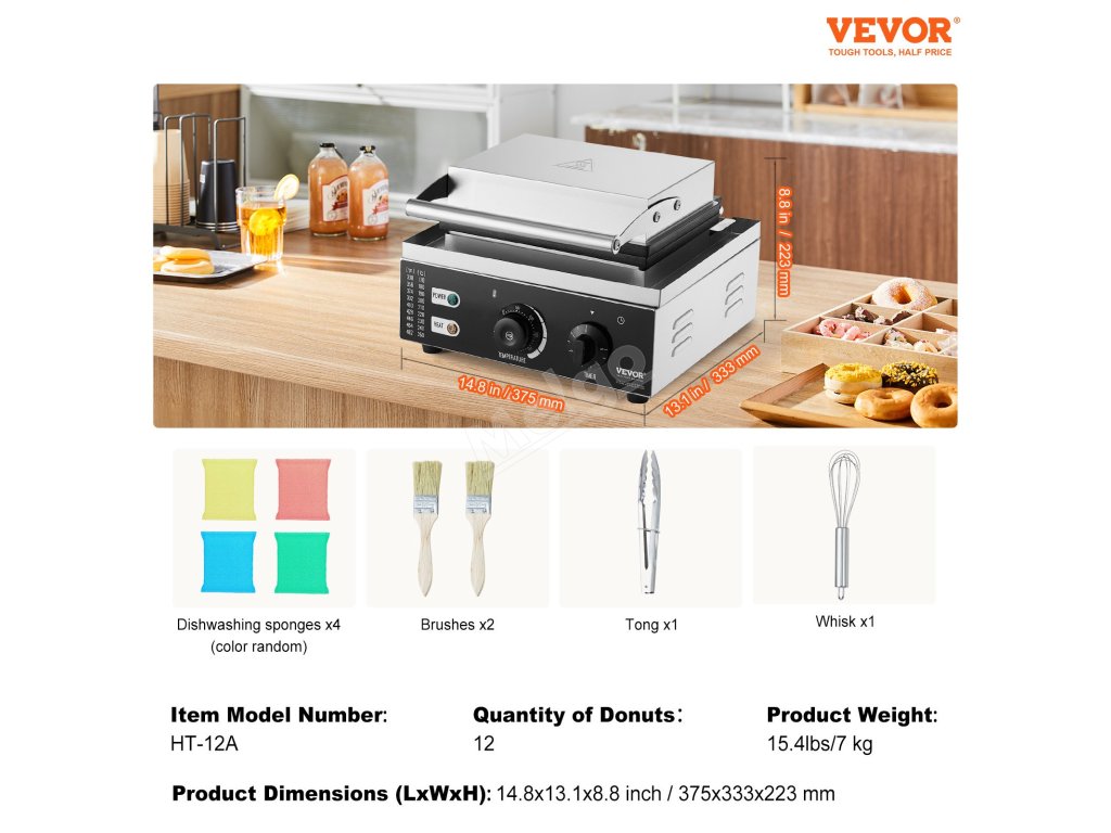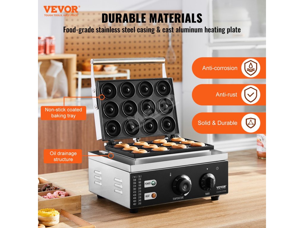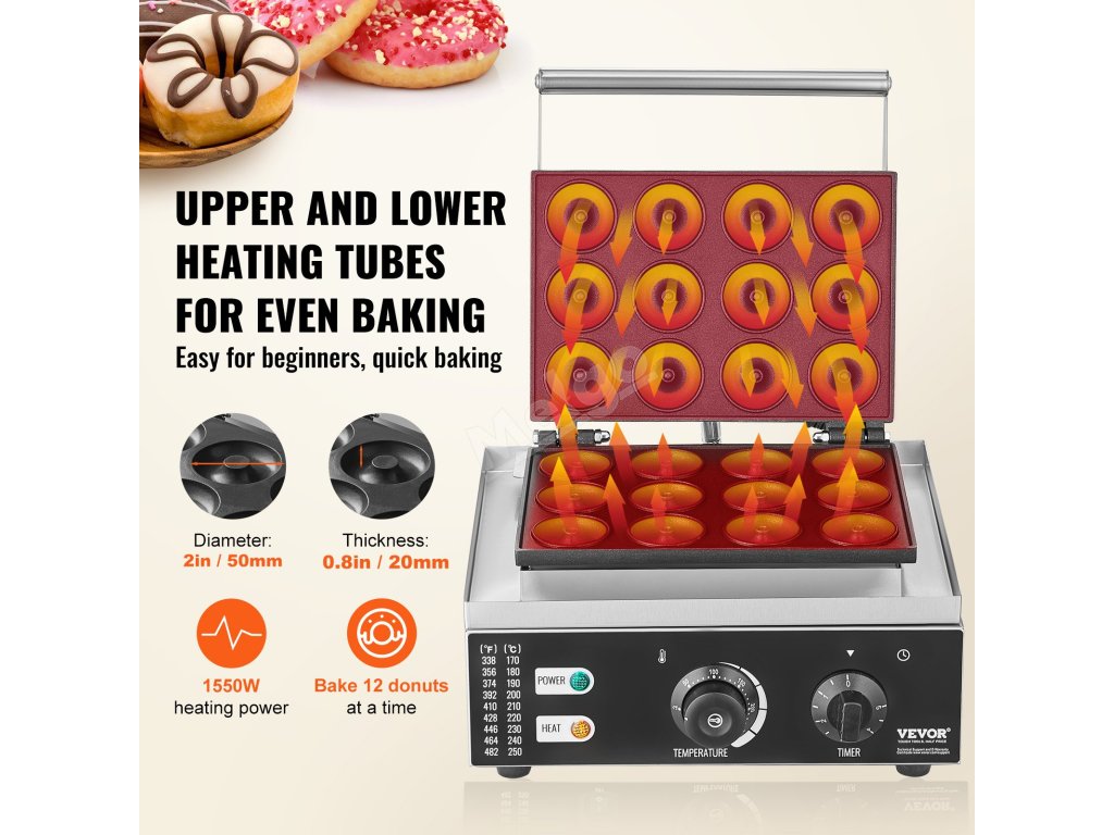 Elektrický stroj na koblihy 1550W, 12 otvorů, dvoustranný ohřev 50–300℃