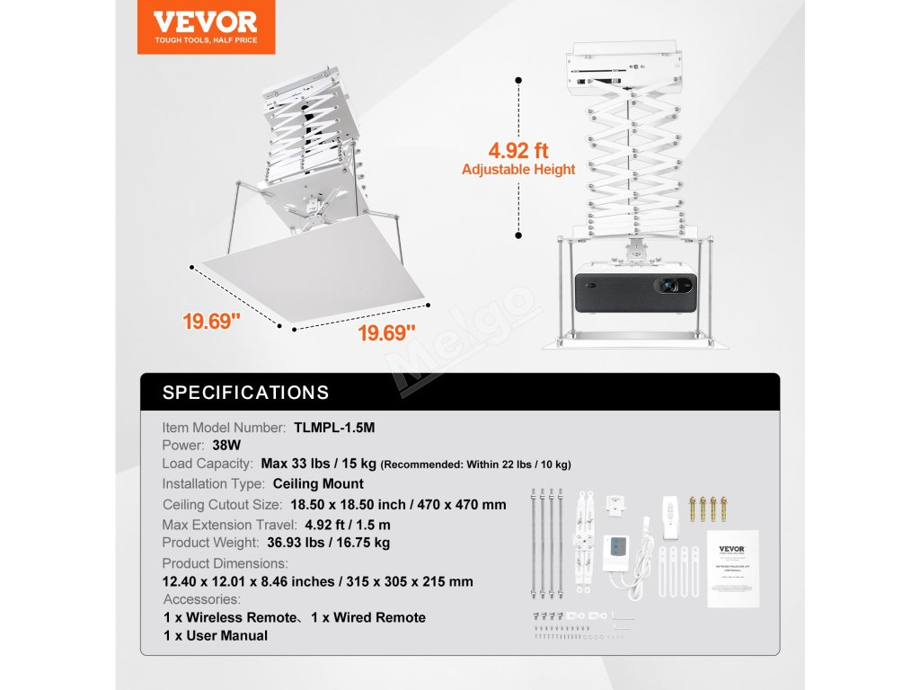Zvedák projektoru VEVOR zlepšuje zážitek ze sledování: bezproblémový, přesný a skrytý