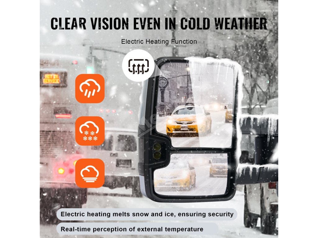 Nedovolte, aby vám déšť nebo sníh bránily ve výhledu! Naše zrcátka pro nákladní vozidla jsou vyhřívaná, aby byla čistá a nezamlžovala se, takže vždy dobře uvidíte, co je za vámi.