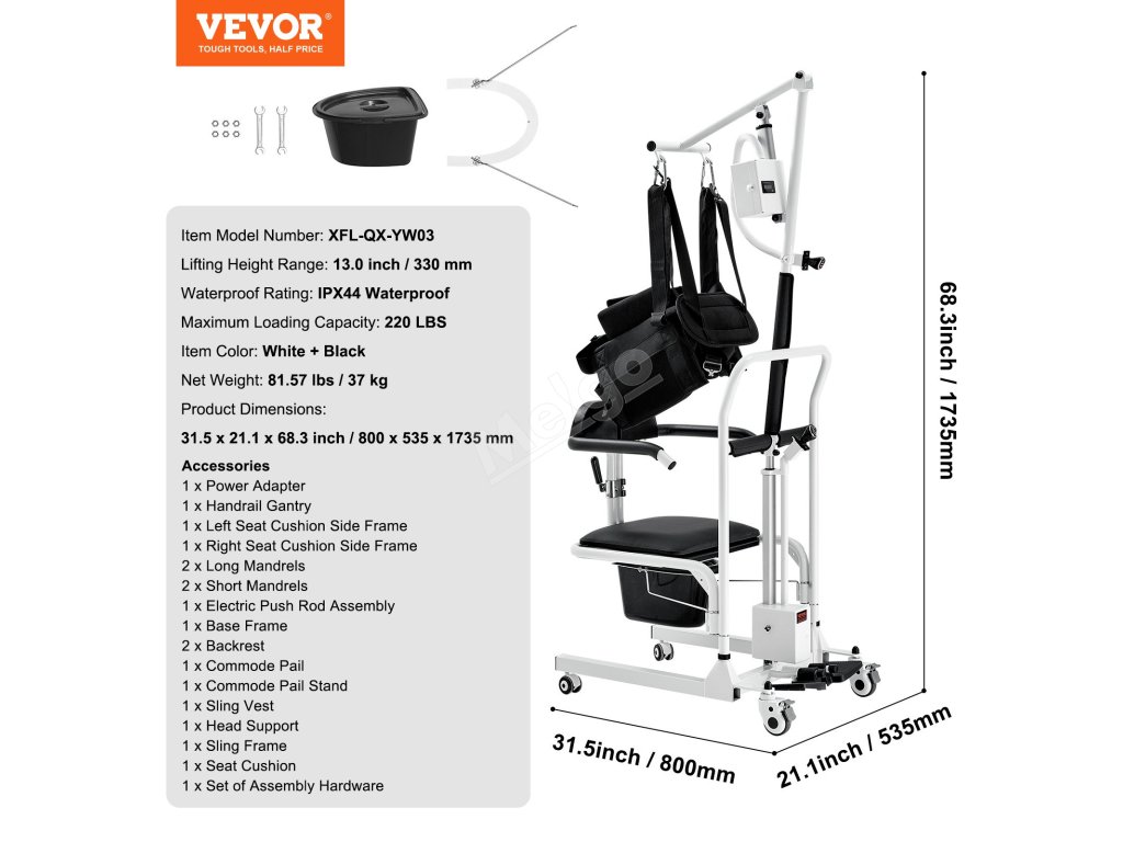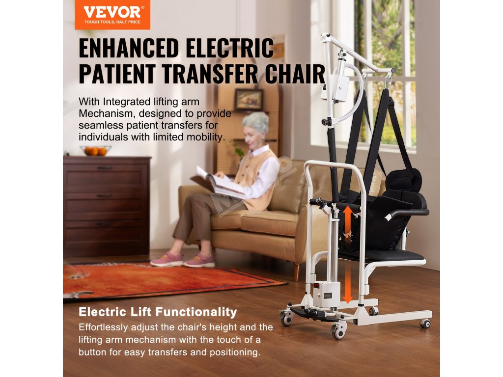 Pokročilé elektrické křeslo VEVOR je ideálním řešením pro starší a zdravotně postižené osoby. Stisknutím tlačítka můžete snadno nastavit výšku křesla a systém zvedacího závěsu, což zajistí bezpečné a snadné přesuny. Už žádné namáhavé ruční zvedání !