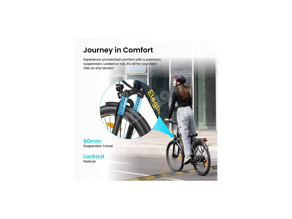 Elektrokolo T2 je vybaveno chytrým LCD displejem, který vás informuje o důležitých údajích, jako je rychlost v reálném čase, ujetá vzdálenost a úroveň nabití baterie, a umožňuje snadno přepínat mezi 5 úrovněmi asistence šlapání, včetně 12, 15, 18, 21 a 25 km/h, a aktivovat režim chůze 6 km/h a další.Kromě toho můžete kolo ovládat prostřednictvím aplikace Eleglide v telefonu. Chytrá aplikace umožňuje aktivovat další funkce, jako je uzamčení kola, nastavení hesla a nastavení časového limitu na displeji, abyste si jízdu více užili.