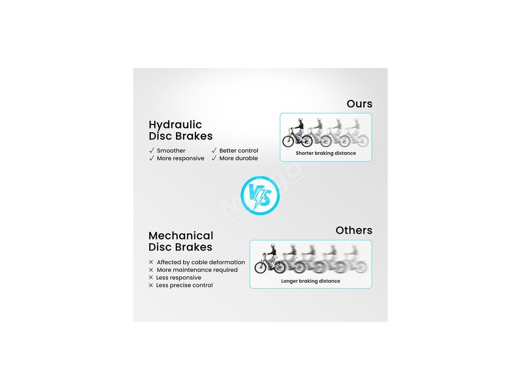 Hydraulické kotoučové brzdy nabízejí lepší ovládání a větší brzdný výkon a mají delší životnost než tradiční mechanické brzdy.