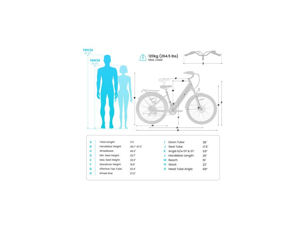 32,7"-43,3" výška sedla | 10°-50° úhel představce | 46,1''-47,2'' výška řídítek