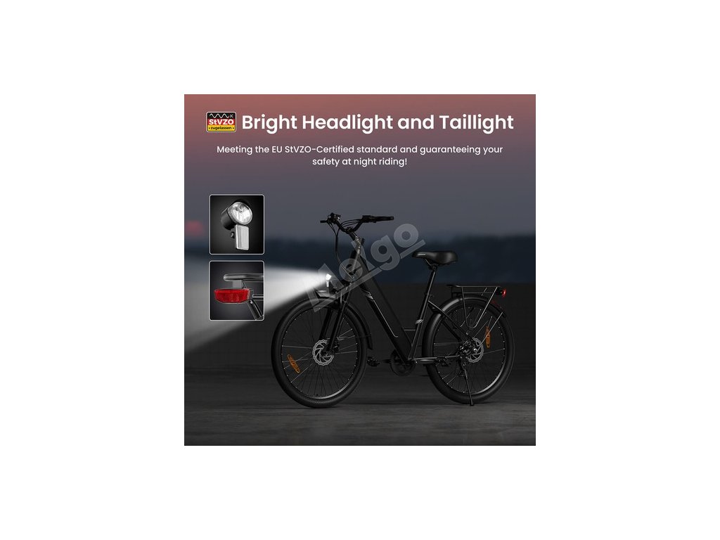 Díky přednímu a zadnímu světlu s certifikací EU StVZO zaručuje toto elektrokolo vynikající viditelnost a bezpečnost při nočních jízdách. Displej LCD je uživatelsky přívětivý a poskytuje přehledné informace, které vás vždy informují o vaší jízdě.