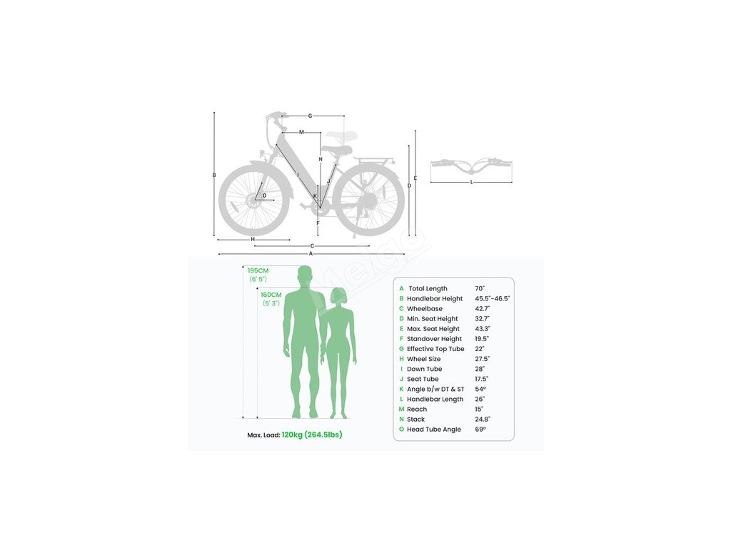 Výška sedadla: 32,7"-43,3" | Výška řídítek: 45,5"-46,5" | Výška jezdce: 5'3"-6'5"