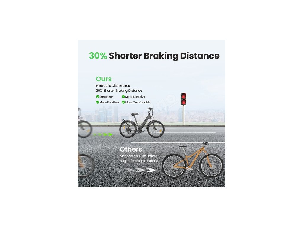 Podvozek Touroll J1 Pro je vybaven hydraulickými kotoučovými brzdami, které poskytují silný a stabilní výkon a umožňují plynulé a účinné brzdění. Brzdná dráha se ve srovnání s mechanickými kotoučovými brzdami zkracuje o 30 %, takže vaše dojíždění je bezpečnější a spolehlivější. Kromě toho je kolo vybaveno odpružením se zdvihem 80 mm, které minimalizuje vibrace a nabízí pohodlnější jízdu. Toto odpružení také obsahuje funkci flexibilního uzamykání, která uživatelům umožňuje vidlici snadno uzamknout nebo odemknout v závislosti na jízdních podmínkách, což zvyšuje celkovou stabilitu.