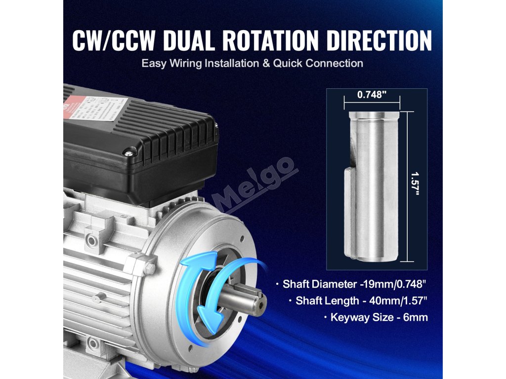 Díky duálnímu směru otáčení CW/CCW se tento motor vzduchového kompresoru snadno instaluje a je uživatelsky přívětivý. S průměrem hřídele 19 mm, délkou hřídele 40 mm a drážkou 6 mm se snadno připojuje k různým zařízením a nabízí velkou univerzálnost pro různé aplikace.