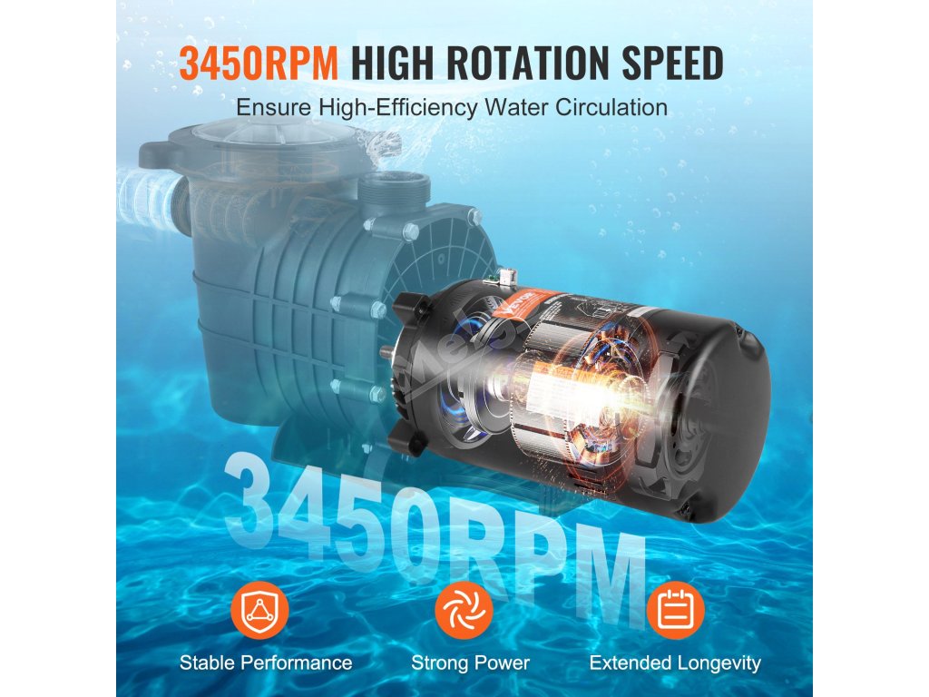 Zvyšte vitalitu svého bazénu, podpořte ji motorem čerpadla VEVOR