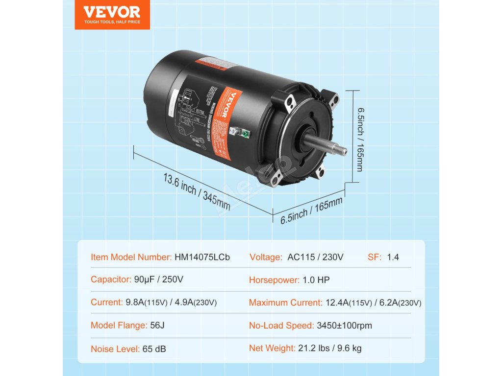 Napájejte své bazénové čerpadlo pomocí motoru VEVOR o výkonu 1 HP. Napětí AC115/230 V, proud 9,8 A (115 V) / 4,9 A (230 V), vysoké otáčky 3450 ot/min, kondenzátor 90 μF/250 V, příruba model 56 J, otáčení ve směru osy. Je správnou volbou pro oživení vašeho bazénového čerpadla a zajištění čistého a průzračného prostředí bazénu.
