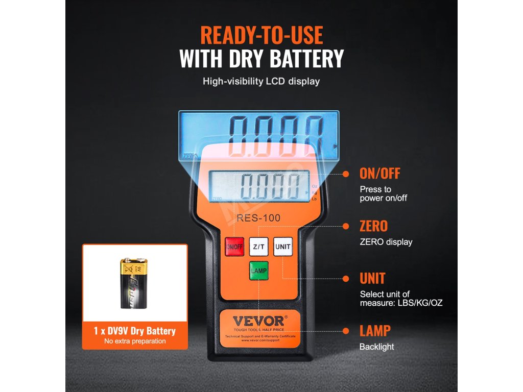 Obsahuje upozornění "FULL" na dálkovém ovladači pro položky, které překročí rozsah vážení, což zabraňuje poškození snímače při nadměrné hmotnosti.