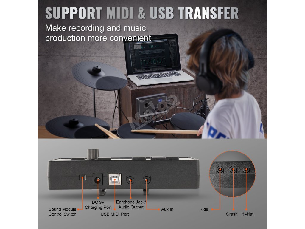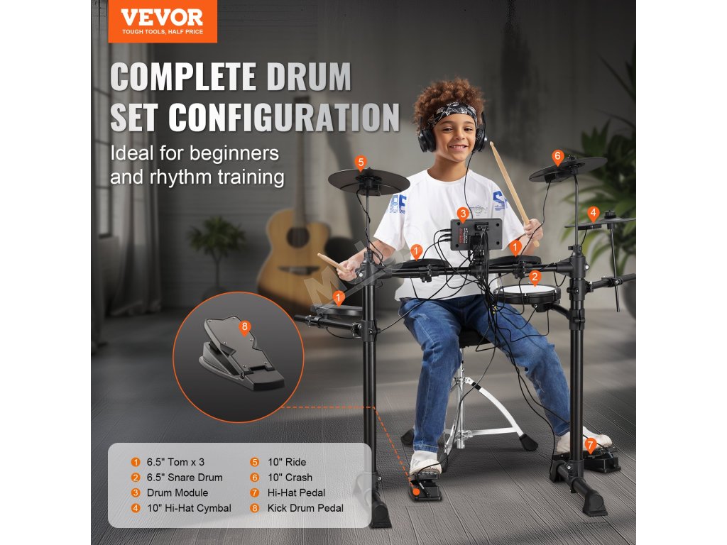 Přenosná 6,5palcová elektronická bicí souprava VEVOR