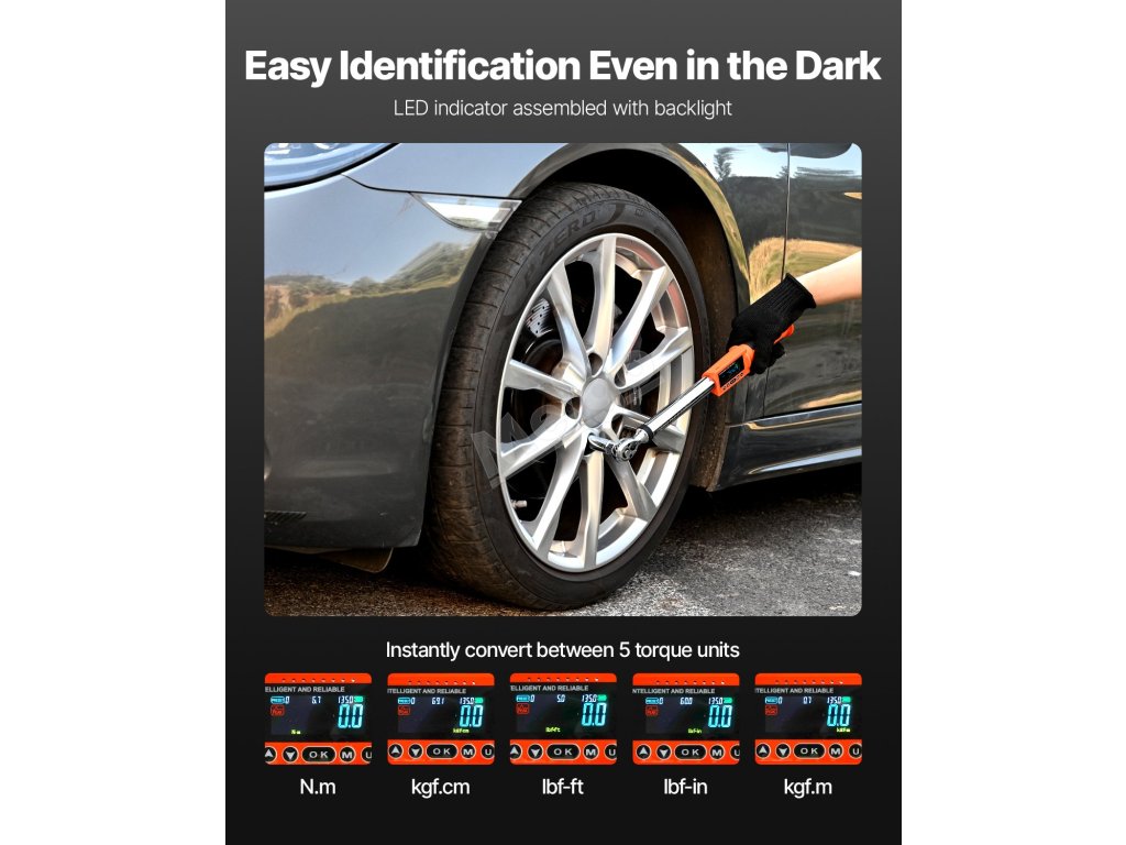 Elektrický momentový klíč s LED displejem zajišťuje větší přehlednost a přesnost a umožňuje snadné čtení i v prostředí se slabým osvětlením. Displej také podporuje různé jednotky, což poskytuje širší rozsah použití.