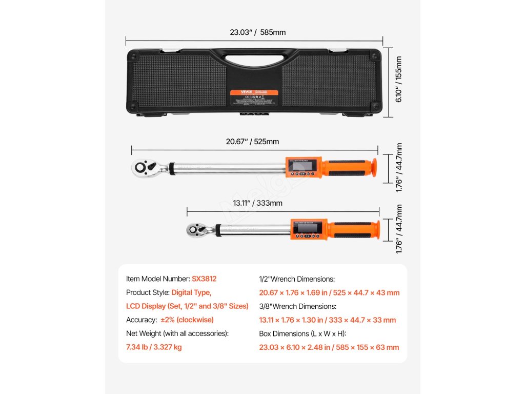 | Štýl produktu | Digitálny typ, LCD displej (sada, veľkosti 1/2" a 3/8") |