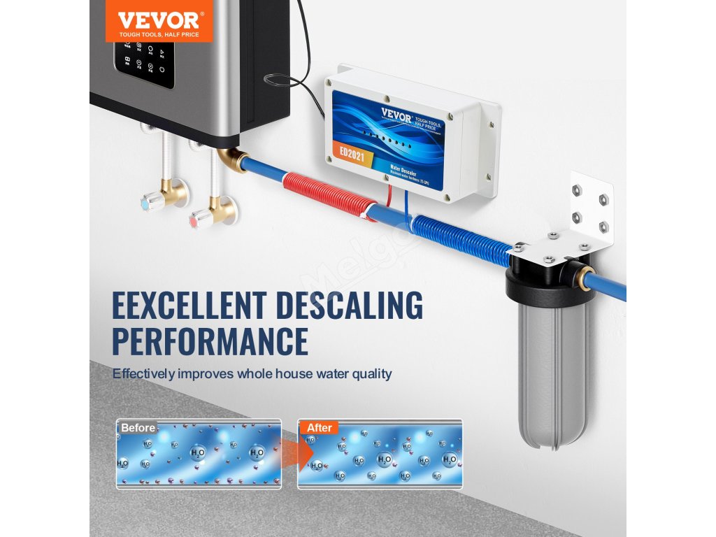 Vychutnejte si čistou vodu v celém domě díky odstraňovači vodního kamene VEVOR bez soli