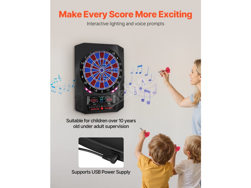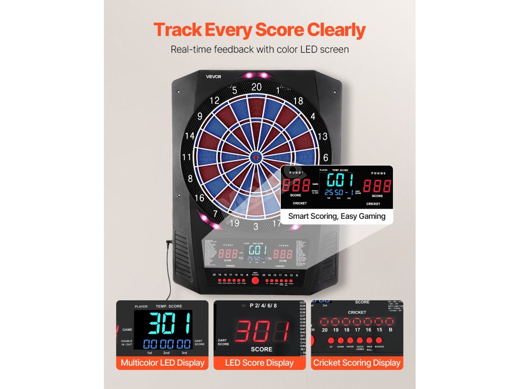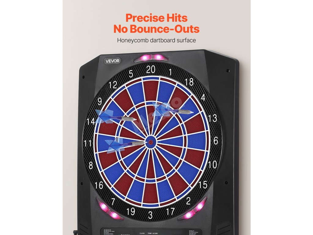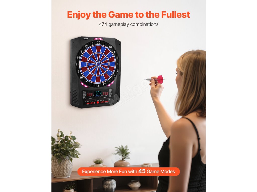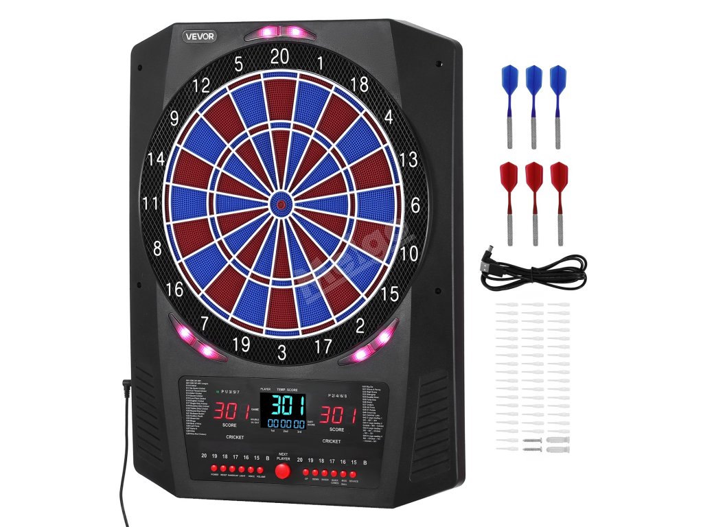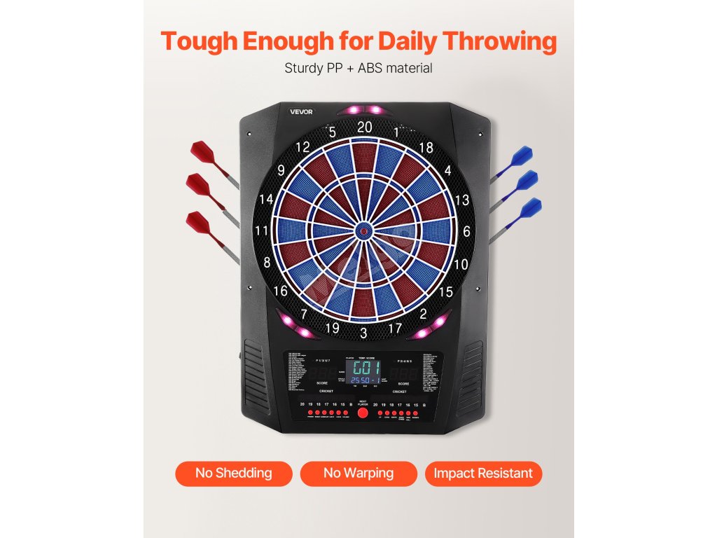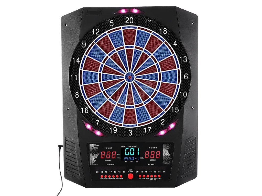 Tento elektronický šipkový terč nabízí 45 herních režimů a 474 herních kombinací a podporuje až 8 hráčů. Barevná LED obrazovka zobrazuje skóre a průběh kola v reálném čase a má zabudovaných několik funkcí, díky nimž je každý hod přesnější a poutavější. Skvěle se hodí pro domácí zábavu i zábavu na večírcích.
