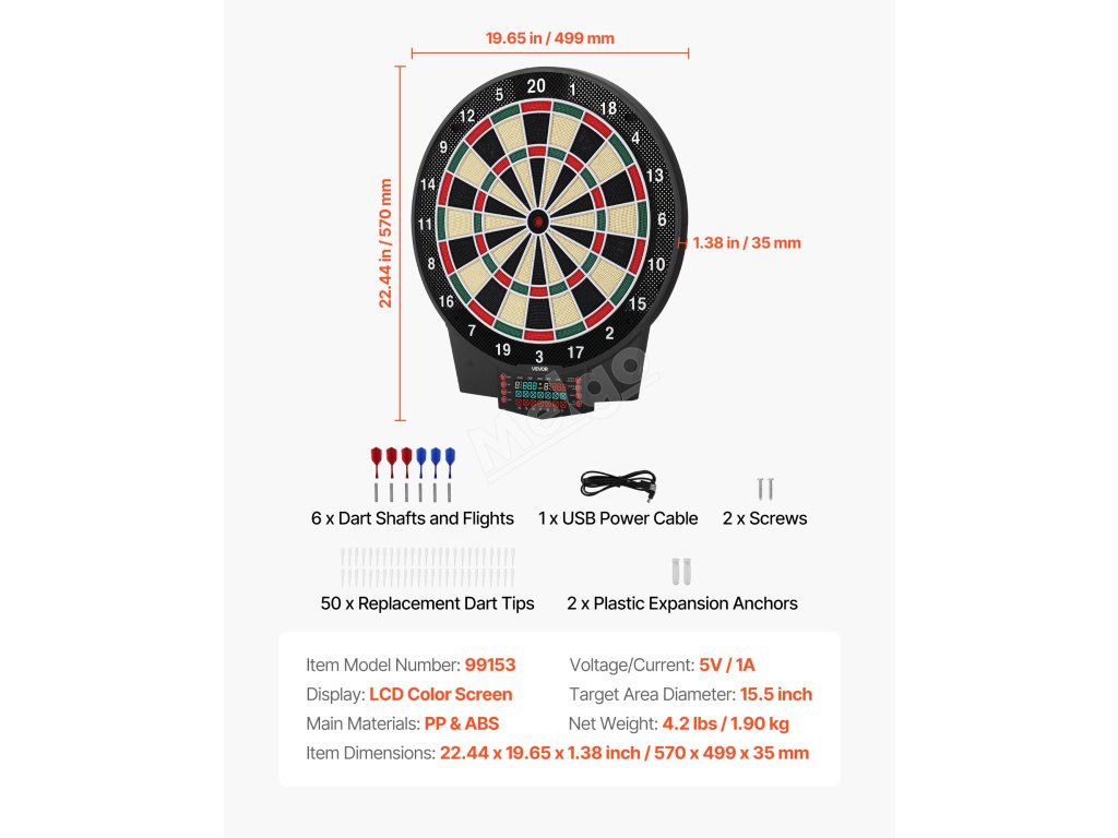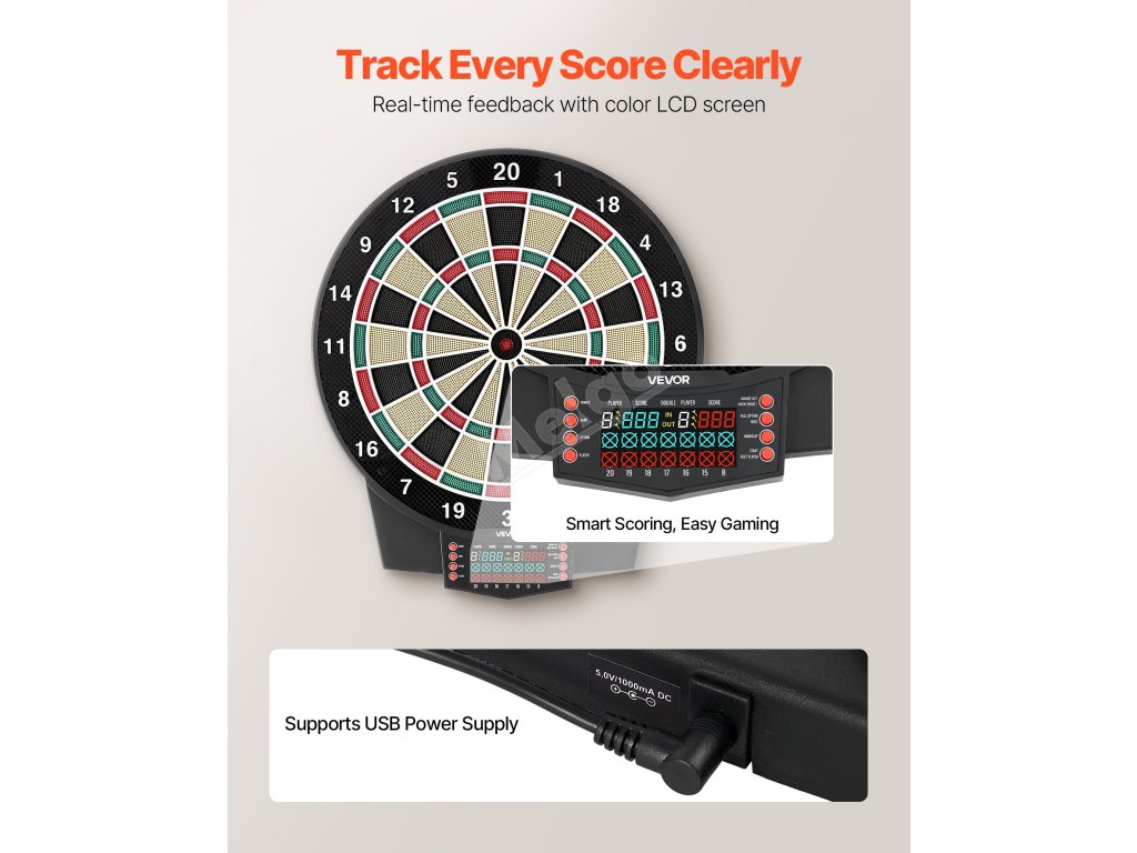 Elektronický terč na šipky 391mm, 43 her 320+ variací, 8 hráčů, lcd