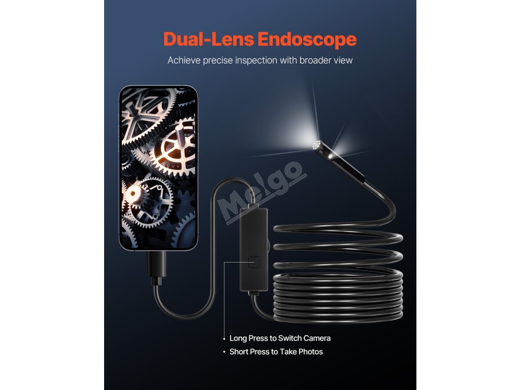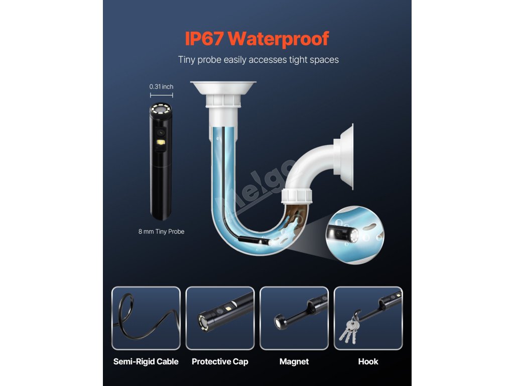 S boroskopem VEVOR se dvěma objektivy překonáte obtížně přístupné oblasti a zvládnete náročné kontroly. Je to základní nástroj pro údržbu automobilů, mechanickou kontrolu, opravy potrubí, kontrolu domácích spotřebičů, kontrolu kanalizace a odvodnění.