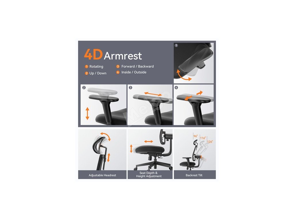 Opera ergonomickej stoličky NEWTRAL má tri možnosti nastavenia výšky a možno ju nakloniť a zablokovať v rozsahu od 96° do 126°. Uhol a výška opierky hlavy sú nastaviteľné. Sedadlo sa dá zdvihnúť hore a dole, posúvať dopredu a dozadu a je vybavené 4D nastaviteľnou podrúčkou. Môžete si nájsť najpohodlnejšiu polohu opory a sily pre svoje telo, či už pracujete, hráte hry alebo odpočívate.