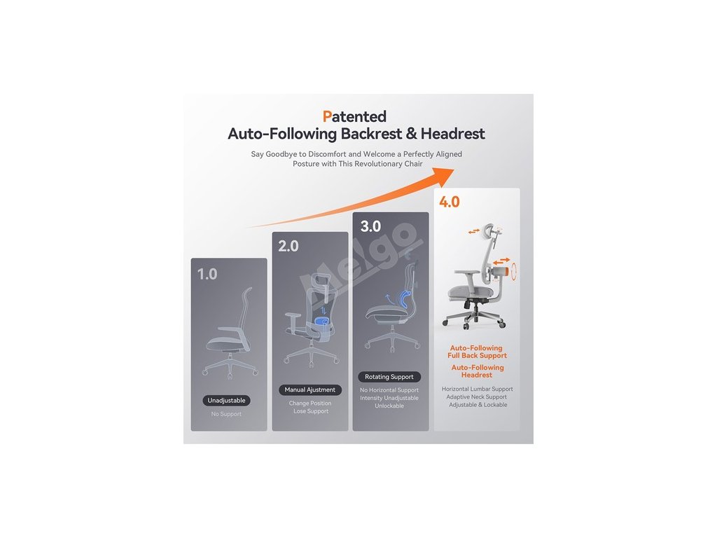 Automatická opěrka hlavy se automaticky přizpůsobuje pohybům hlavy a krku a poskytuje nepřetržitou a optimální oporu. Je vybavena polohovatelnou opěrkou nohou a je uzamykatelná ve 4 klíčových polohách v rozsahu 96°-136° náklonu, což vám zajistí neustálé pohodlí. Jedná se o skutečně dokonalý systém pro práci i volný čas.