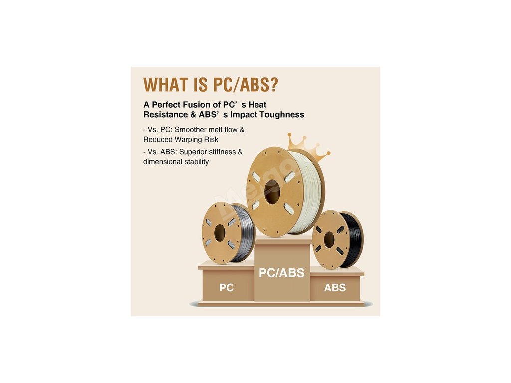 Kombinuje tepelnou odolnost polykarbonátu (PC) s nárazuvzdorností ABS a poskytuje tak bezkonkurenční trvanlivost pro náročné projekty 3D tisku;