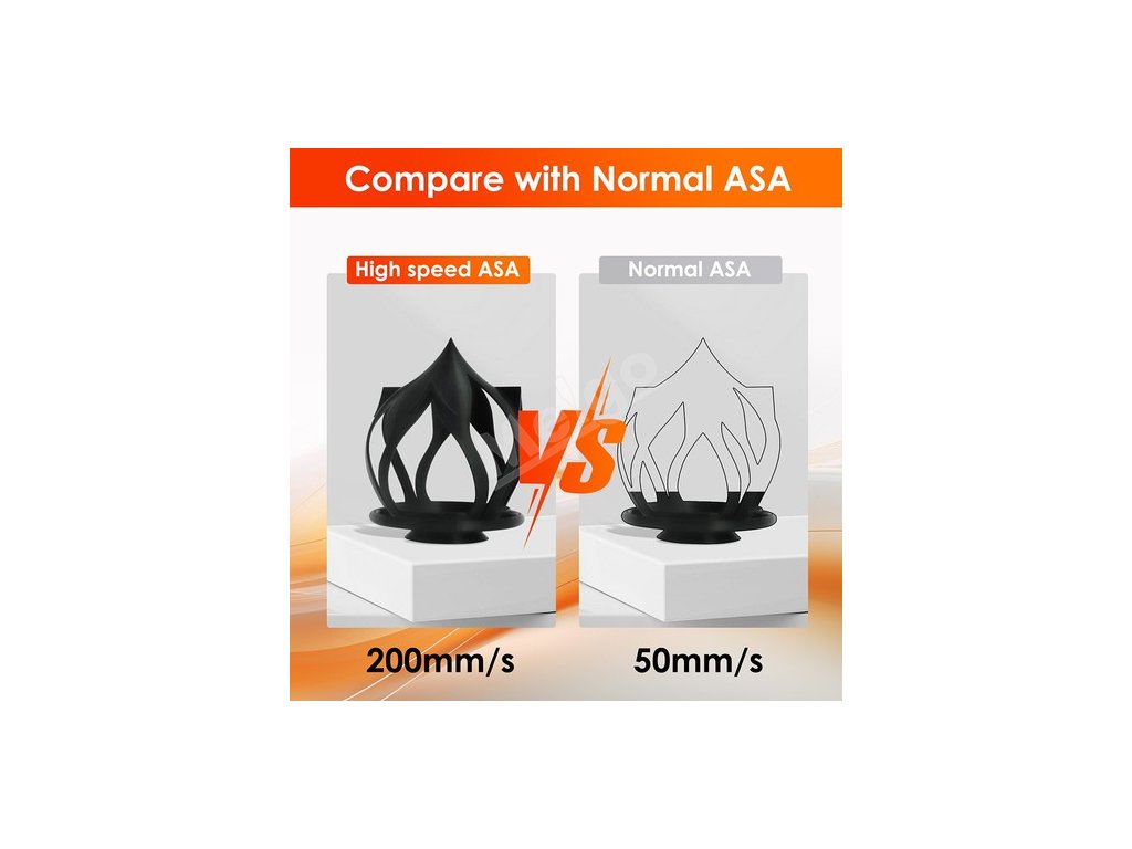 Vysokorychlostní ASA má vynikající hladkost a může být hladce vytlačována při vyšších rychlostech tisku, což snižuje riziko ucpání. Má rychlé chlazení a vytvrzování, což zvyšuje rychlost tisku a zároveň snižuje riziko deformace
