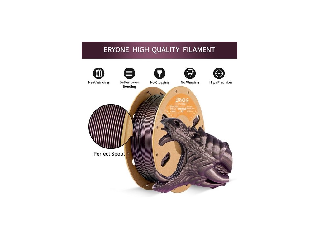 ERYONE Burnt Titanium PLA Filament mění barvy s měnícím se světlem a vytváří podmanivý třpytivý efekt připomínající hvězdy. Různá světla a úhly mají různé vizuální efekty, které dodají vašim projektům umělecký nádech.