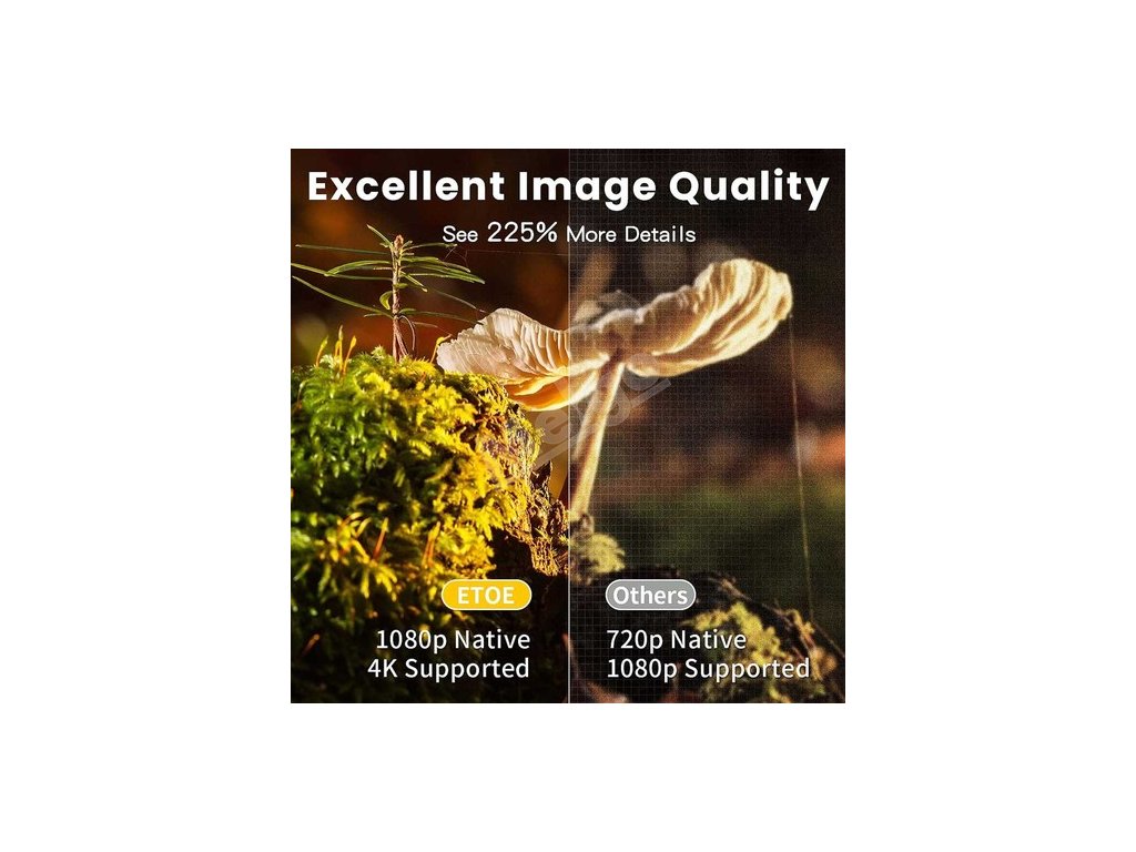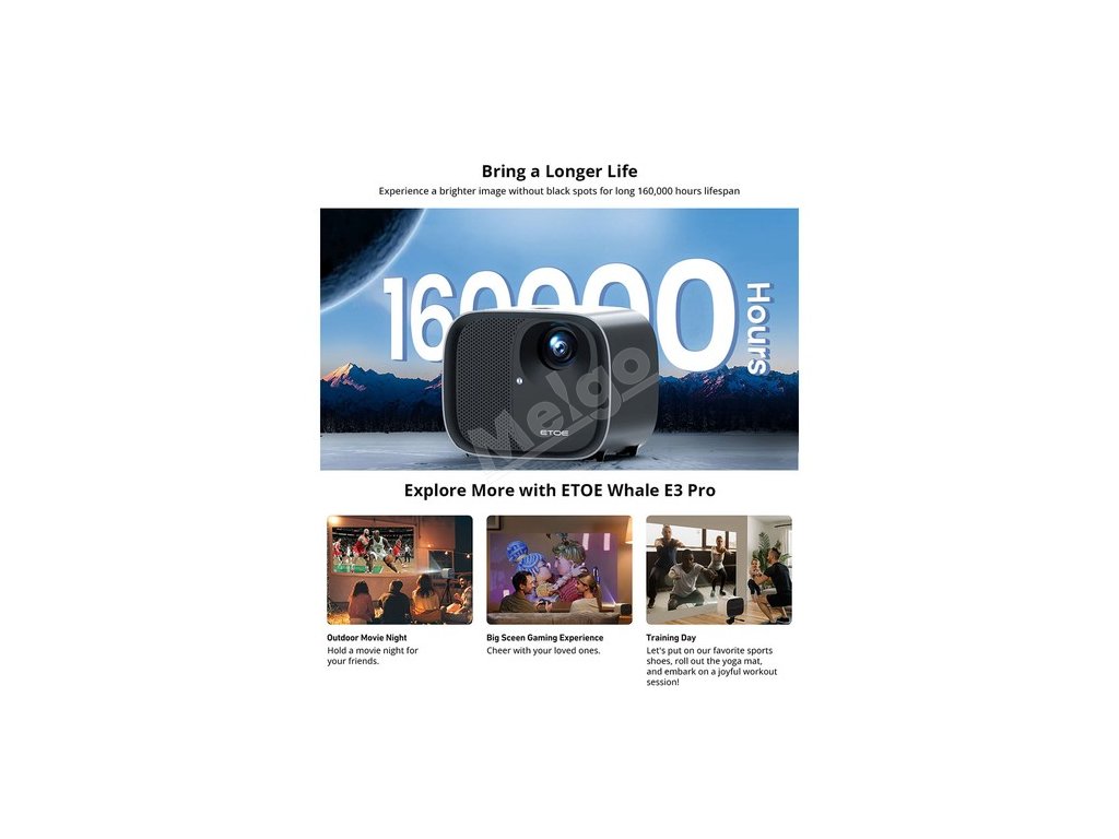 ETOE E3 Pro je projektor Google TV 11 navržený tak, aby poskytl filmový zážitek těm, kteří mají omezený prostor pro velký televizor. Namiřte toto přenosné zařízení na zeď a můžete si vychutnat svůj oblíbený obsah. Zatímco levné projektory často šetří, ETOE E3 Pro slibuje kvalitní funkce a také je splňuje. S rozlišením 1080p, 2 x 10W reproduktory a dvěma chladicími ventilátory je tento projektor zárukou skvělého zážitku ze sledování. Navíc nabízí automatické zaostřování a automatickou korekci lichoběžníkového zkreslení, což z něj činí univerzální volbu. Přiložený dálkový ovladač usnadňuje navigaci v operačním systému Google TV díky vyhrazeným tlačítkům pro základní funkce a zkratkám k oblíbeným streamovacím službám. Spárování dálkového ovladače je jednoduché a vyžaduje rychlé stisknutí a podržení určitých tlačítek pro aktivaci Bluetooth a infračervené komunikace.