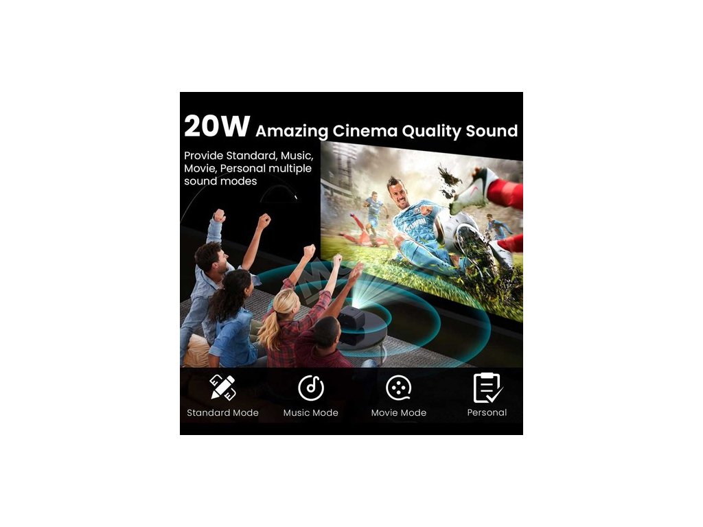 Dva reproduktory projektoru o výkonu 2*10 W vám zprostředkují pohlcující zvuk kina. Má nejen různé režimy zvukových efektů, jako je standardní režim, filmový režim a hudební režim, ale podporuje také režimy definované uživatelem.