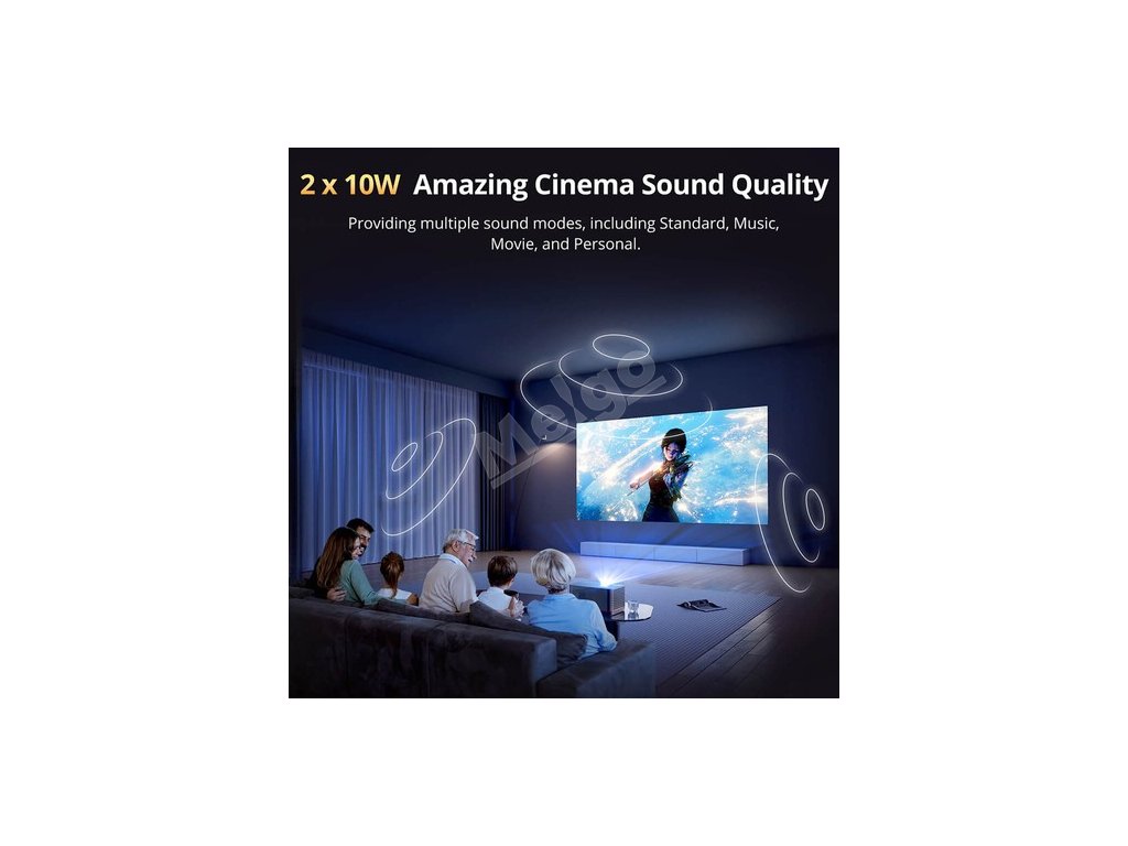 ETOE Whale Pro se může pochlubit dvěma reproduktory (2*10 W), které vám poskytnou pohlcující zvuk jako v kině. Díky různým zvukovým režimům, jako jsou standardní, filmový a hudební režim, si uživatelé mohou vytvořit i vlastní zvukové režimy pro optimální zvukový výkon. Díky certifikaci Dolby Audio zaručuje vysoce kvalitní zvuk pro pohlcující audiovizuální zážitek.
