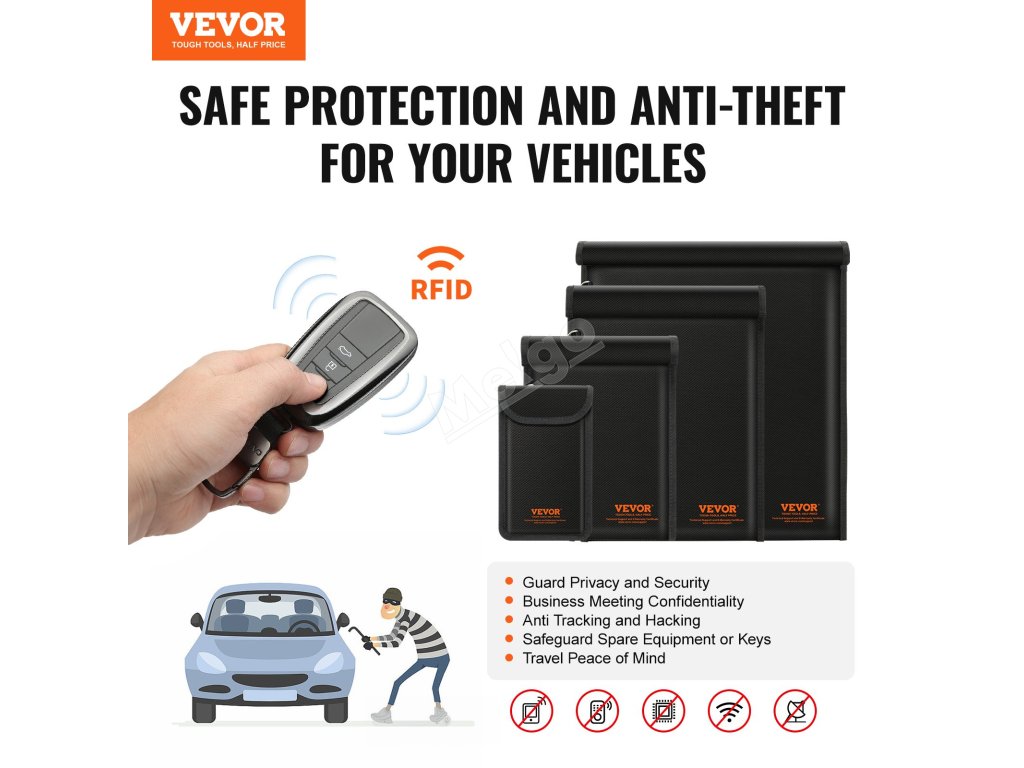 Naše sada faradayových sáčků zabraňuje zlodějům v získávání a vysílání signálů z vašich klíčů, zabraňuje krádeži a odcizení bezklíčového zapalování, zabraňuje sledování a chrání vaše soukromí. Udržuje vaše cennosti a informace v bezpečí.