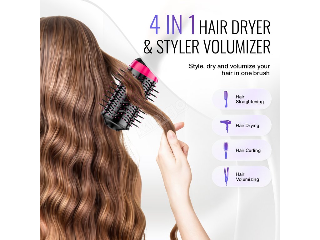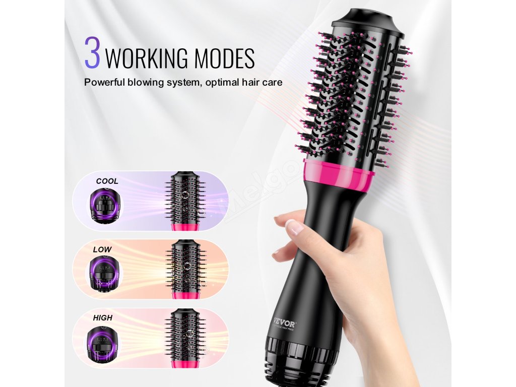 VEVOR 4 v 1 kartáč na vysoušení vlasů: váš stylingový kouzelník! Bez námahy dosáhnete vysoušení, kulmování, narovnávání a zvětšování objemu vlasů a splníte tak všechny své kadeřnické potřeby. Díky pokročilému keramickému povlaku a 30W+ záporným iontům účinně snižuje poškození způsobené teplem a zároveň uzamyká vlhkost pro hladší a zdravější vlasy.