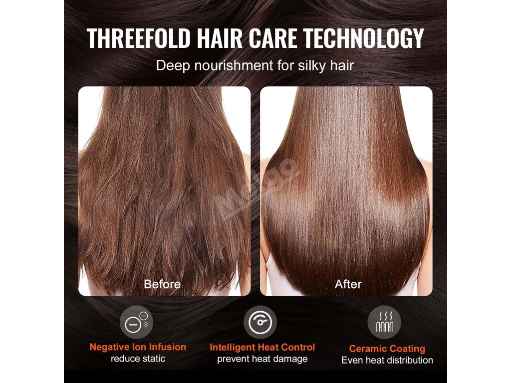 Náš horkovzdušný styler nabízí několik nastavení teploty a režimu, takže vám umožní rychle vysušit mokré vlasy. Vestavěný systém vyživování zápornými ionty a regulace teploty současně vyživuje a vysušuje vlasy a snižuje jejich poškození teplem.