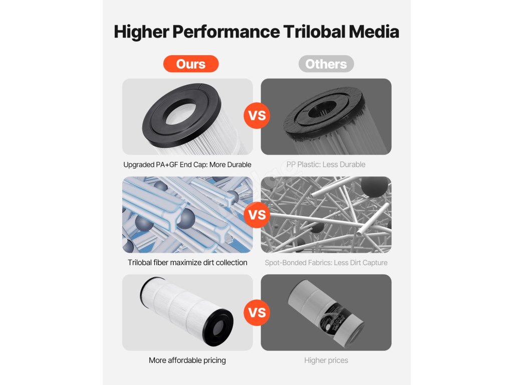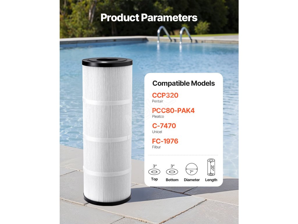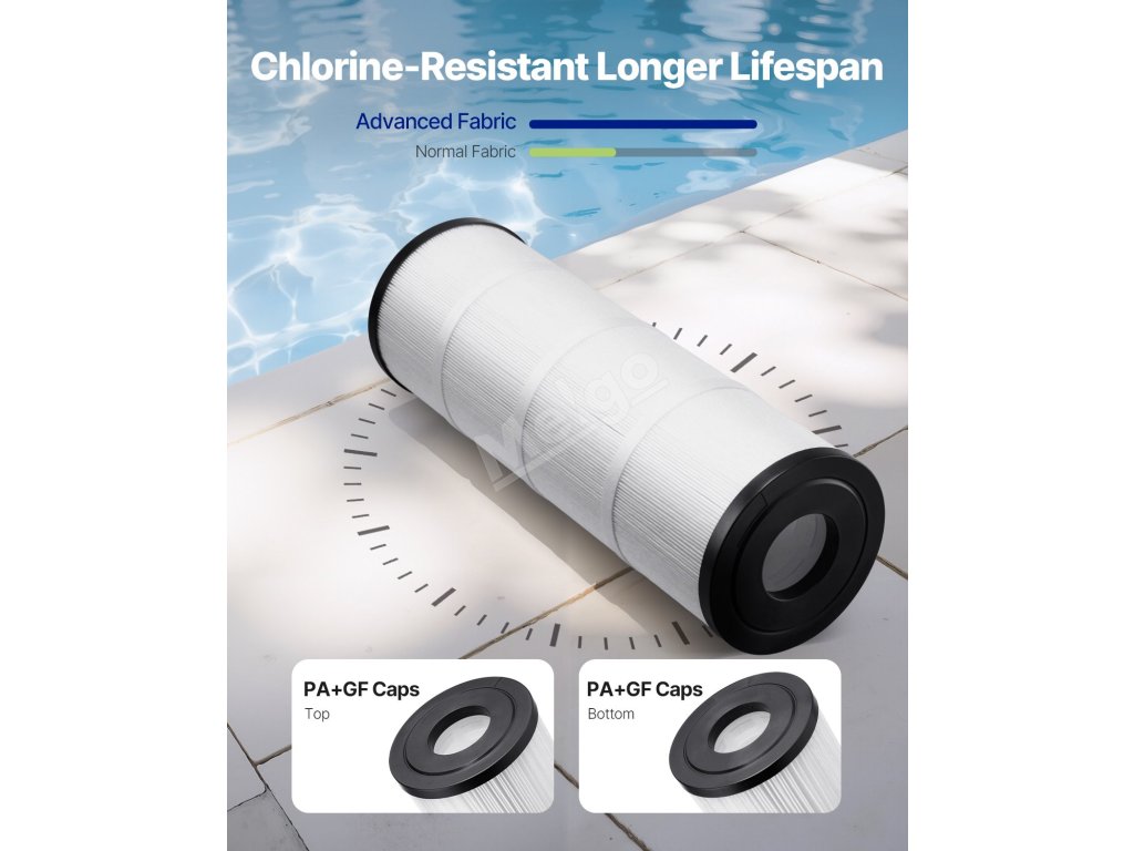 Bazénová filtrace s kartuší 4 x 80 m² nabízí snadné čištění, dlouhotrvající výkon a filtraci. Jeho pokročilá konstrukce udržuje vodu v bazénu křišťálově čistou díky jádru z uhlíkových vláken a účinným záhybům. Je odolný vůči chlóru a energeticky účinný, což zajišťuje snadnou údržbu a nižší náklady.