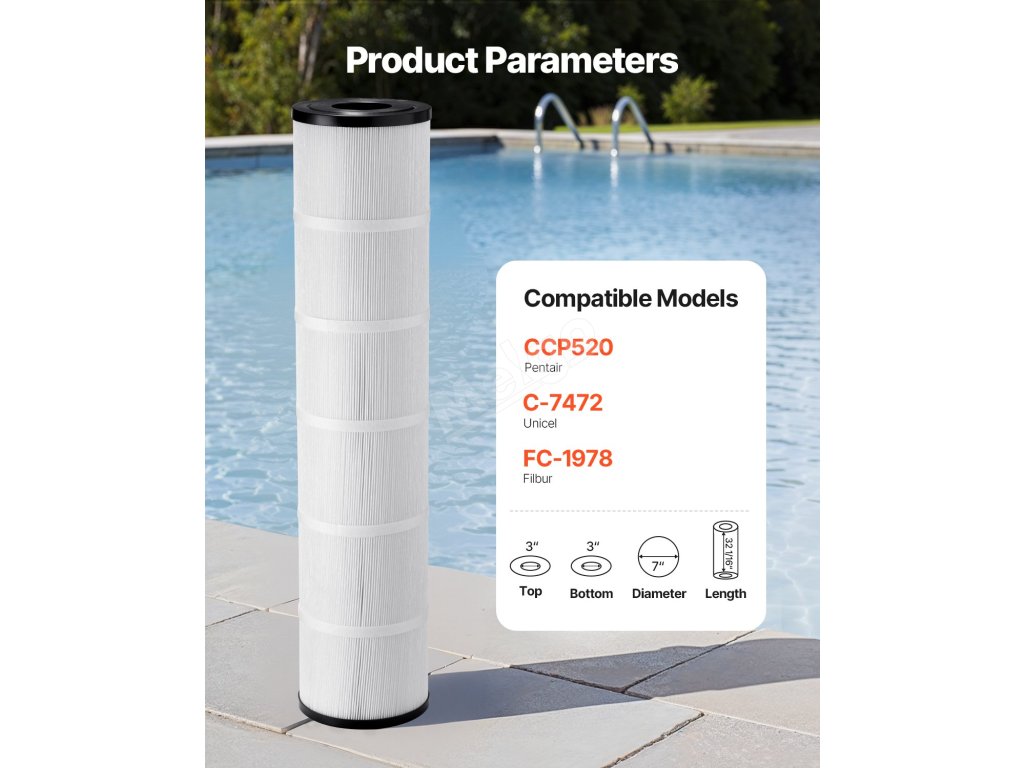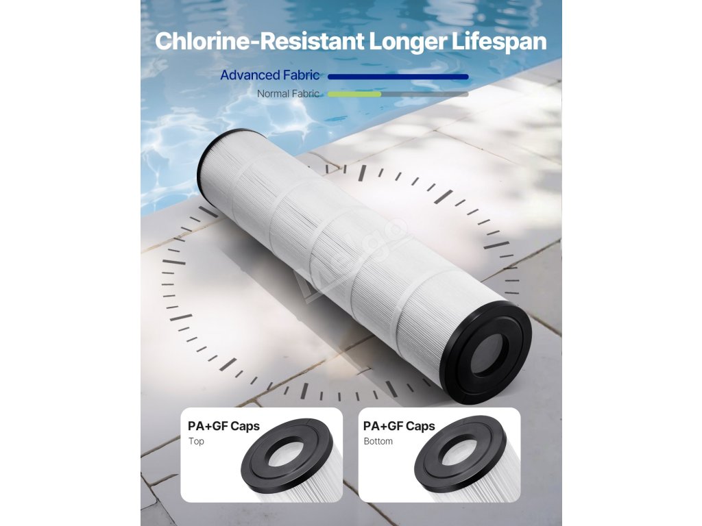 Bazénová filtrace s kartuší 4 x 130 m² nabízí snadné čištění, dlouhotrvající výkon a filtraci. Jeho pokročilá konstrukce udržuje vodu v bazénu křišťálově čistou díky jádru z uhlíkových vláken a účinným záhybům. Je odolný vůči chlóru a energeticky účinný, což zajišťuje snadnou údržbu a nižší náklady.