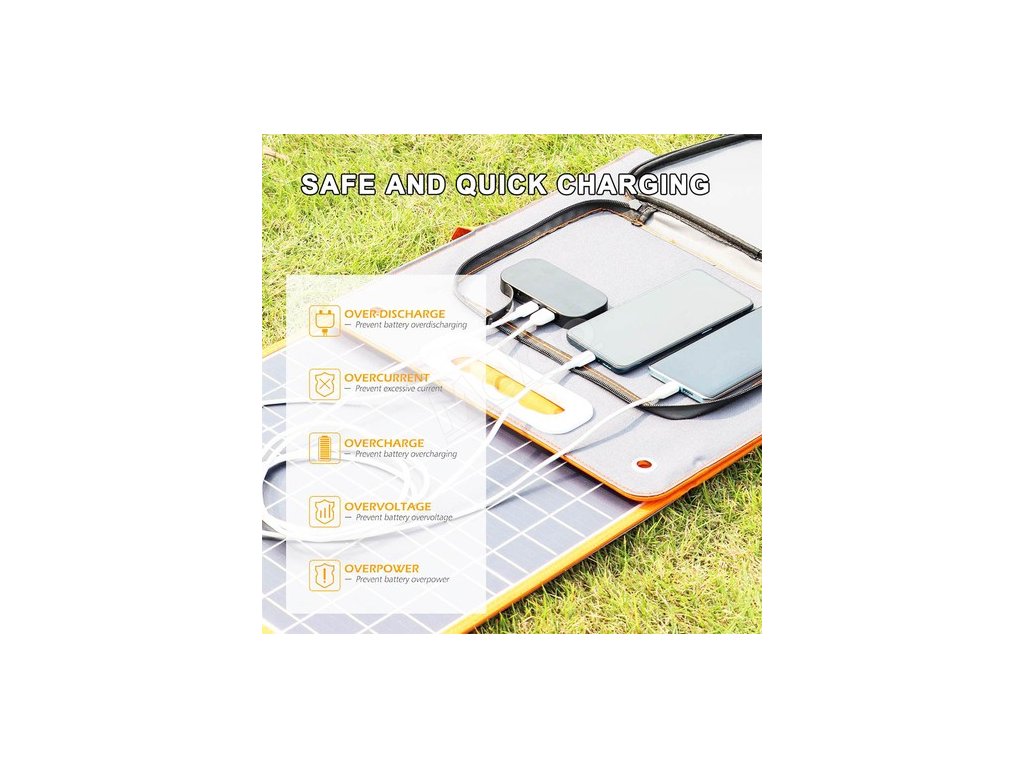 Vestavěný pokročilý čip zajišťuje o 30 % rychlejší nabíjení než tradiční ovladač. Inteligentně identifikuje vaše zařízení a maximalizuje rychlost nabíjení, přičemž chrání vaše zařízení před přebíjením a přetížením. Nabíjecí proud je monitorován a automaticky upravován podle úrovně slunečního světla.