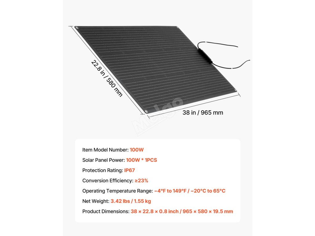 Tento 100W polopružný monokrystalický solární panel poskytuje ≥23% vysokou účinnost přeměny, čímž přeměňuje více slunečního světla na stabilní energii. Jeho lehká a flexibilní konstrukce se přizpůsobí obytným vozům, střechám domů, lodím a dalším zakřiveným povrchům, a poskytuje tak flexibilní řešení pro použití mimo síť.