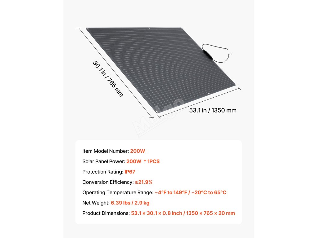Flexibilní solární panel 200 w monokrystalický 21,9% ip67 s mc4
