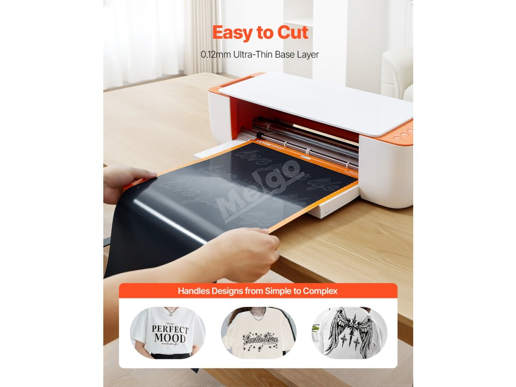 Náš termotransferový vinyl na trička se snadno používá: navrhněte obrázek, vystřihněte a upleťte vinyl, umístěte jej na předmět, zahřejte a odlepte nosnou fólii. Profesionálně vypadajícího výsledku snadno dosáhnou i ti, kteří s projekty přenosu tepla začínají.