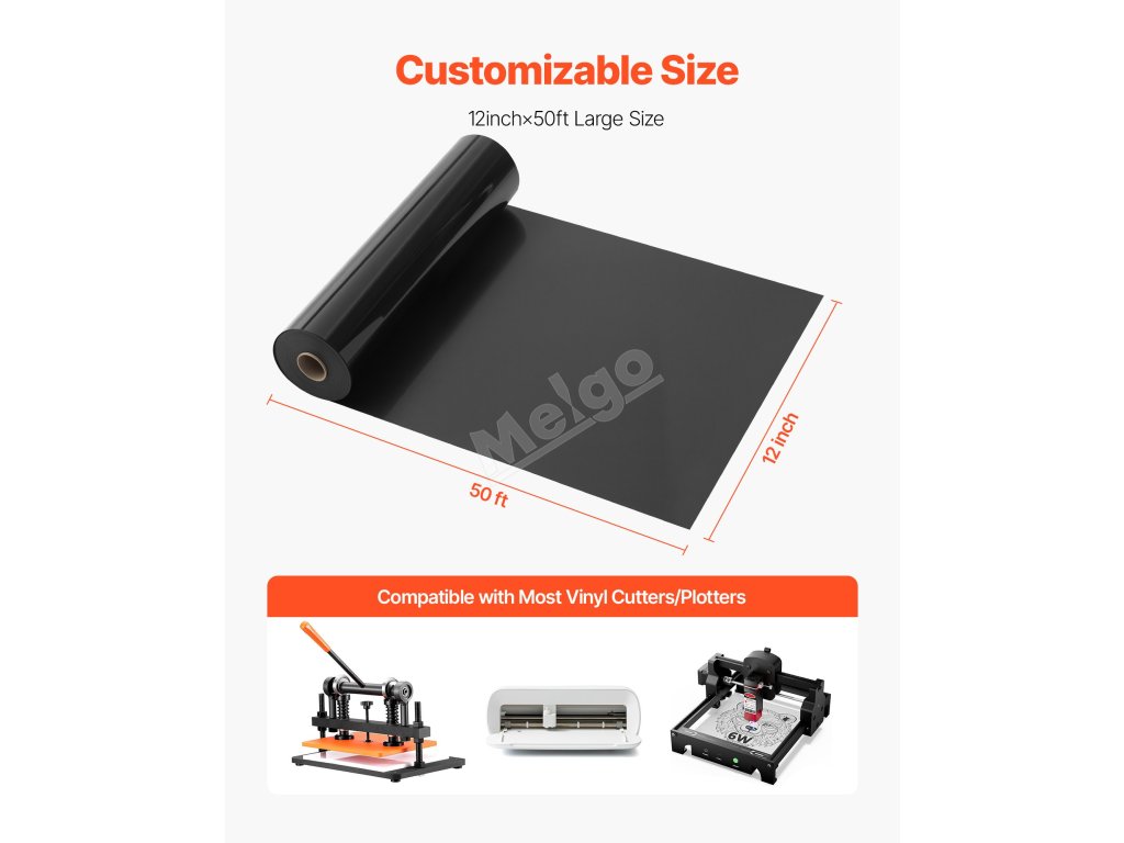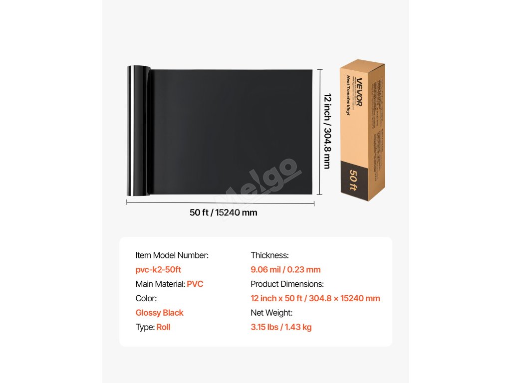 12 palců x 50 stop role černého vinylu pro přenos tepla